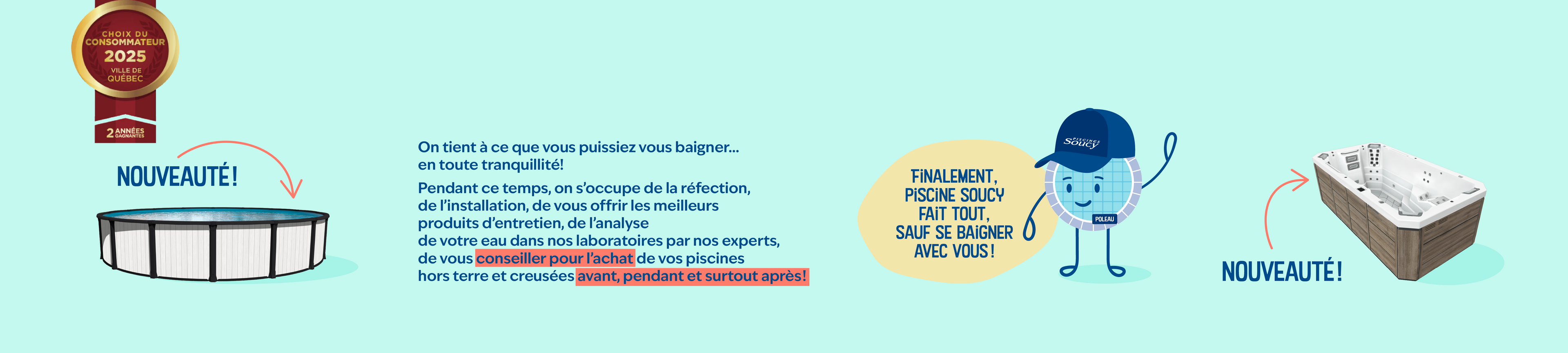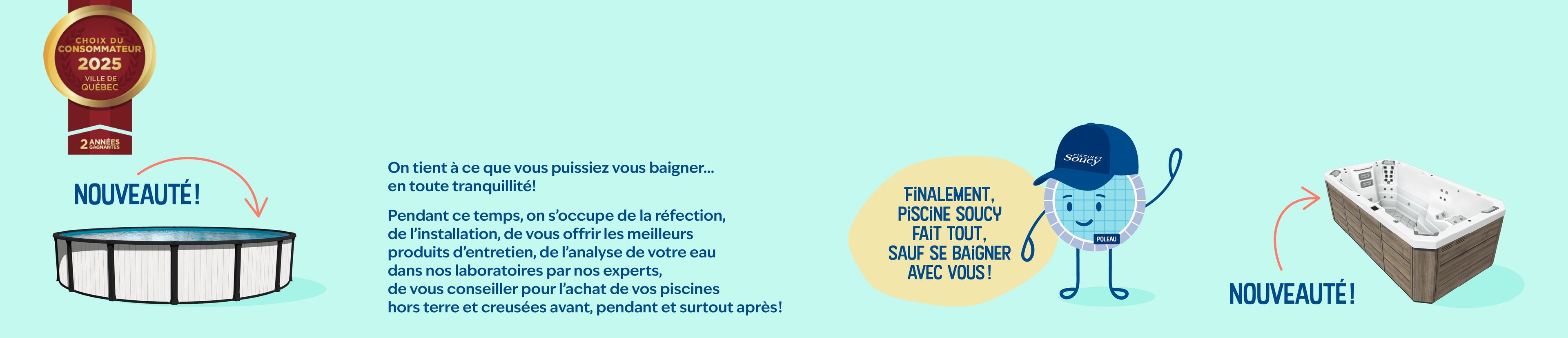 Encore une fois cette année, Piscines Soucy est fier d'être le choix du consommateur dans la région de Québec, et ce, pour une deuxième année consécutive. Nous remercions toute notre fidèle clientèle qui nous fait confiance depuis plus de 65 ans,
